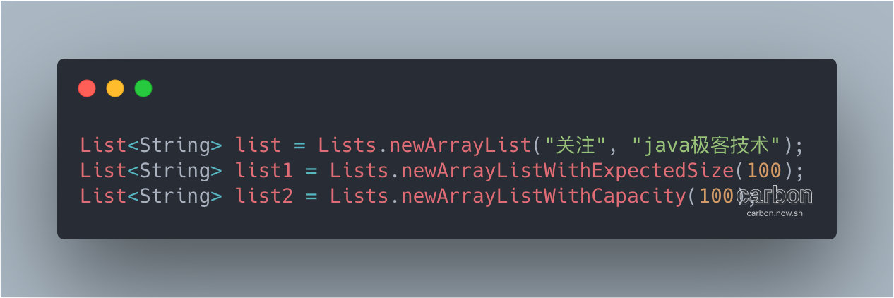 相比于 new 集合方法,Guava 方法创建方式更加简单。