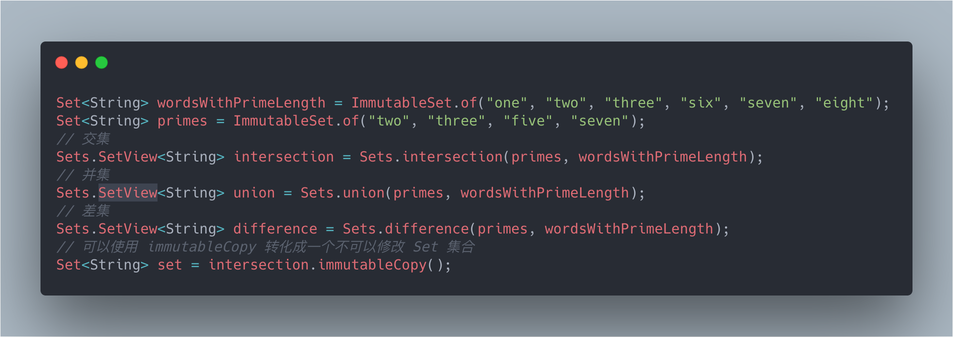 Set<String> set=Sets.newHashSet();