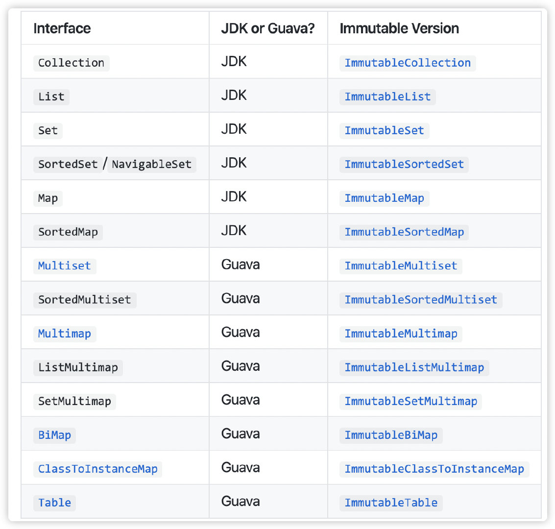 Guava 不可变集合支持 JDK 所有集合接口: