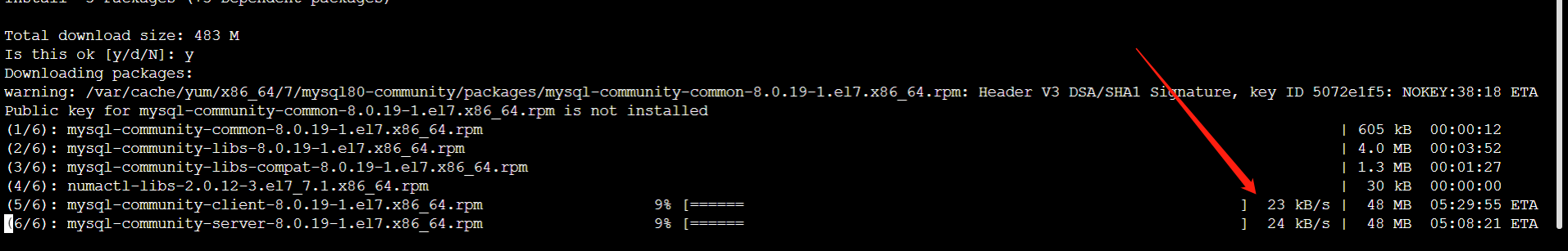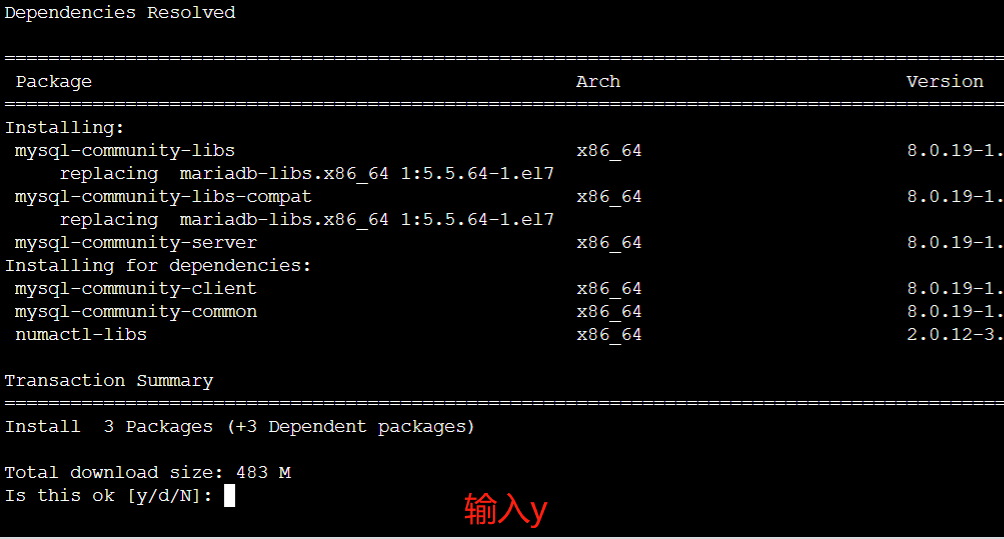 - 5安装mysql,发现提示,y到底