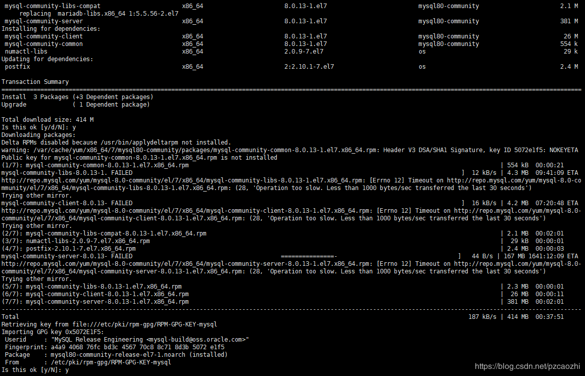 sudo rpm -ivh mysql80-community-release-el7-1.noarch.rpm