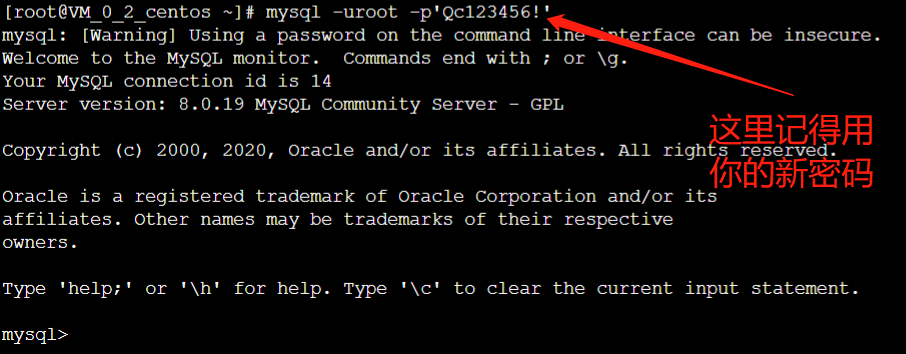 如我们的mysql -uroot -p'Qc123456!' 这里的Qc123456!就是我的新密码