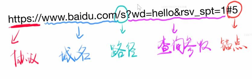 协议+域名/IP+端口号+路径+查询参数+锚点