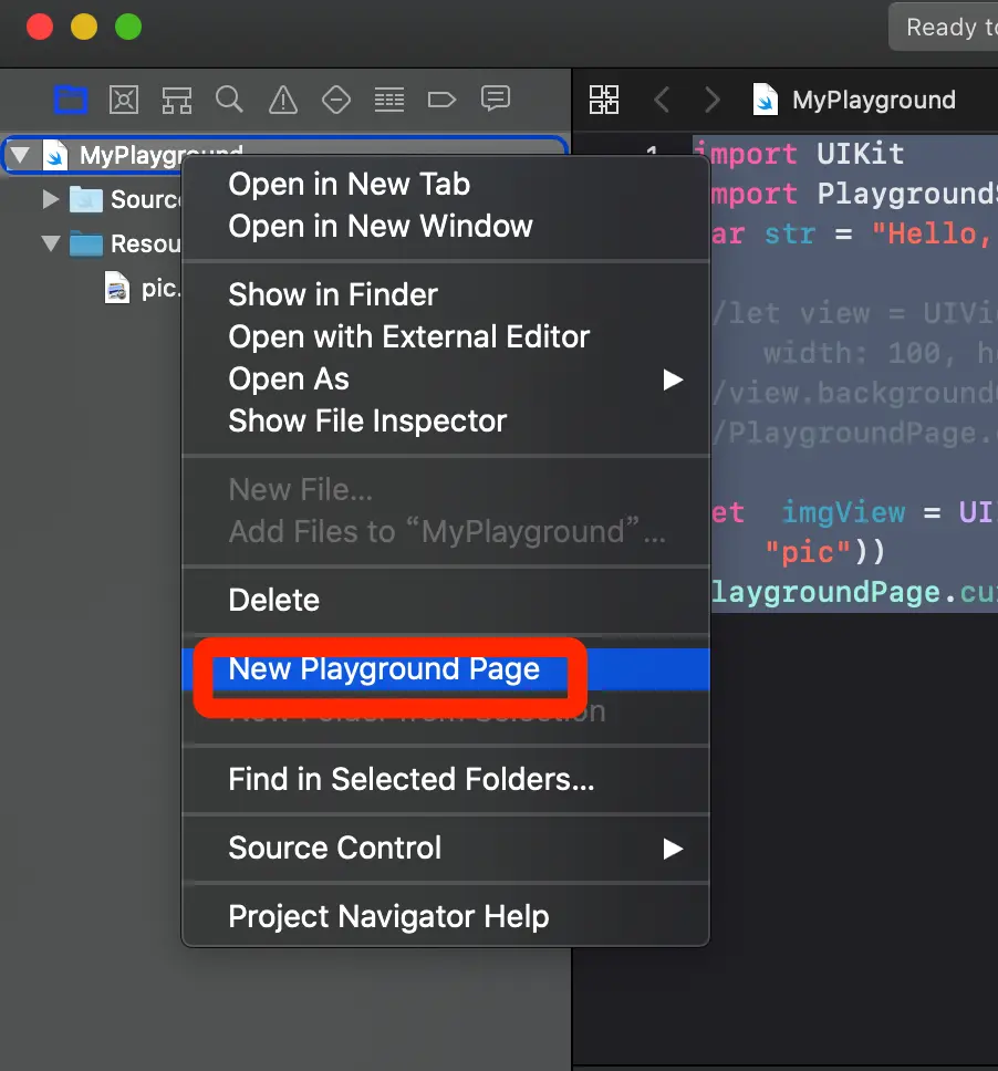 - 加载图片 加载图片前需要先将图片资源导入项目中去,利用快捷键 command + 0 ,展开左侧工作区间,将图片拖入Resource中去