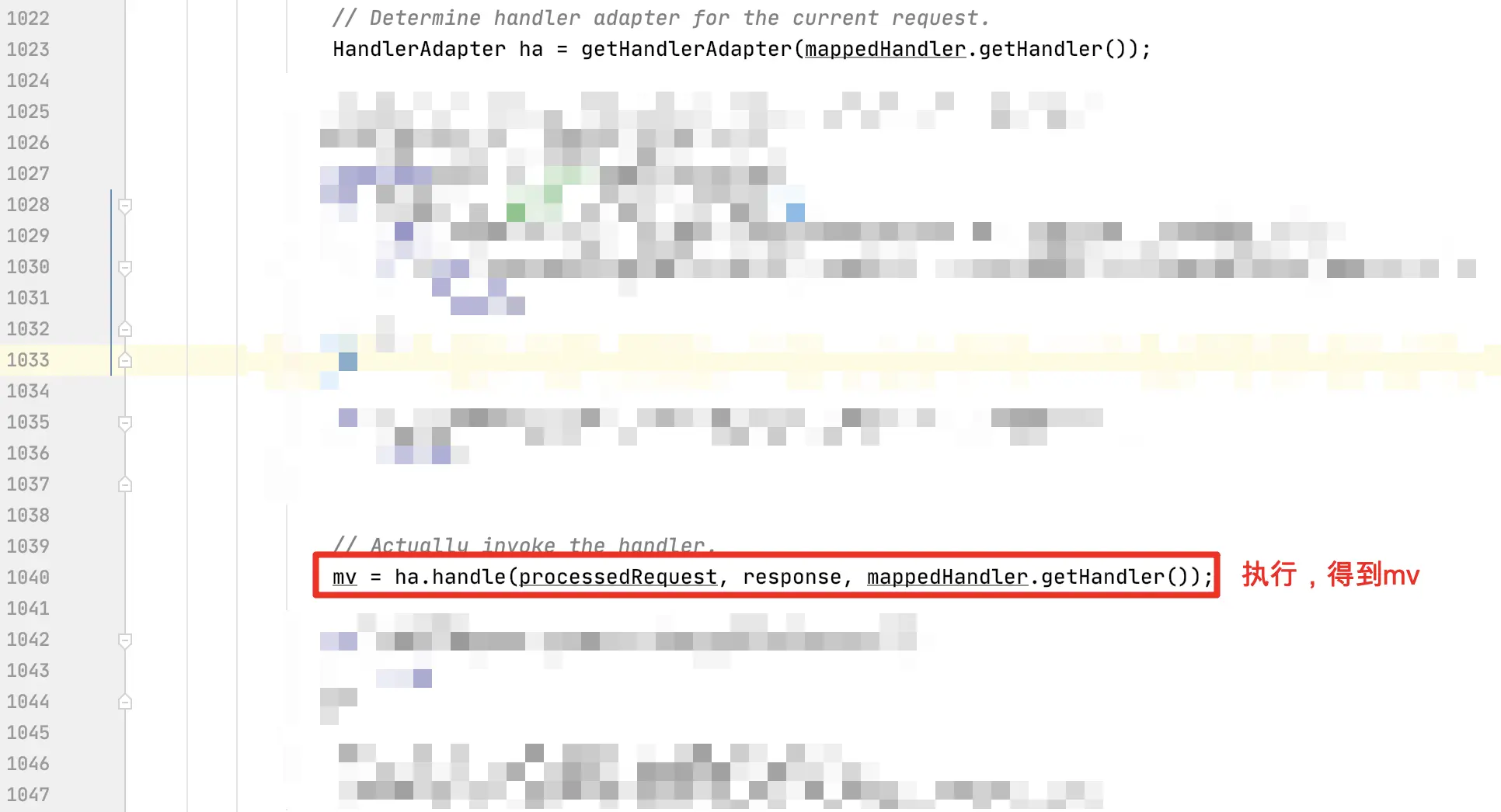 doDispatch 会匹配相应的 HandlerMapping (可以理解为你在 Controller 中写的方法),然后执行并拿到返回结果(也就是 ModelAndView)