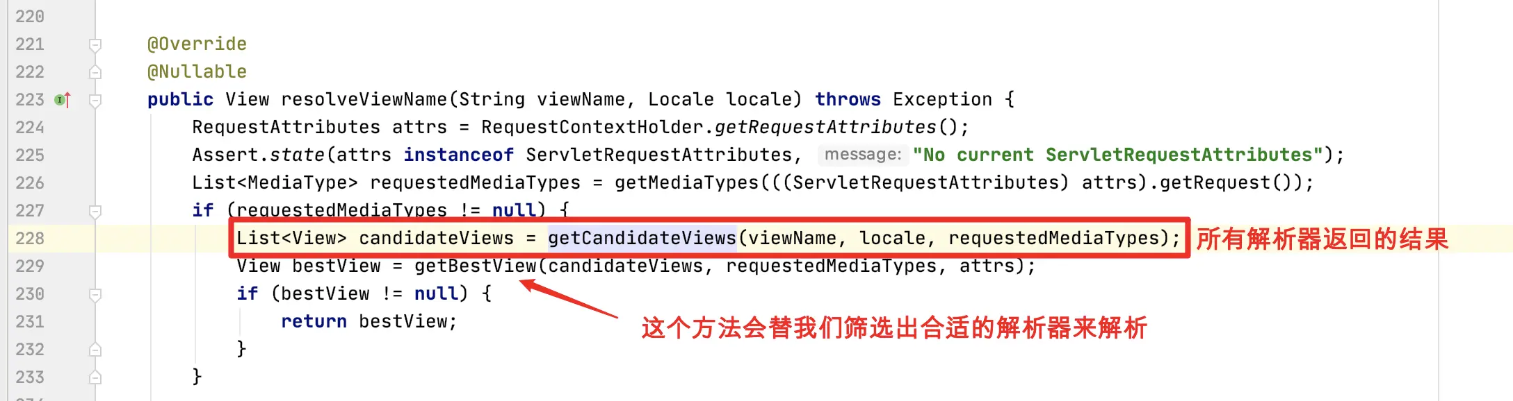 ViewResolvers 中 ContentNegotiatingViewResolver(详见 0x0 解释)它去问所有的视图解析器:这个 ModelAndView 你们能解析的了吗?,如下图: