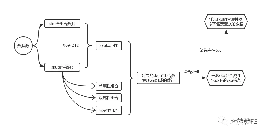 所以这里需要一个集合,这个集合包含当选择任意个数量 sku属性的时候,应该被置灰的 sku属性集合