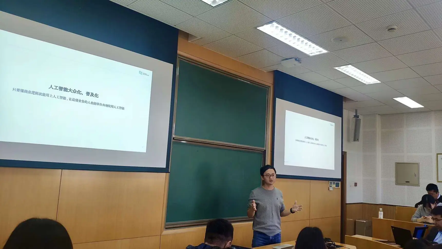 图1 高梓尧老师在清华经管的“商务分析整合实践”课堂上介绍SQLFLow
