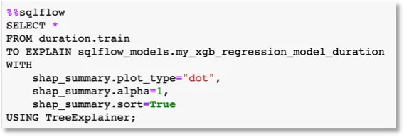 第三步,对建立的模型进行解释。图3中展示的是通过 SHAP 工具对模型进行解释性分析的 SQL 语句。