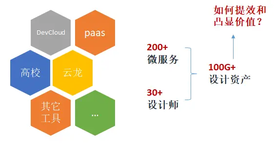 华为云应用研发管理平台包括DevCloud、PaaS、云龙等很多产品线,上百个微服务。几十名设计师,每天都在产出大量的设计资产,包括产品、组件、图标的设计等,同时不同设计资产有大量的版本。日积月累之下,要管理这么多资产,是一件十分令人头疼的事情。