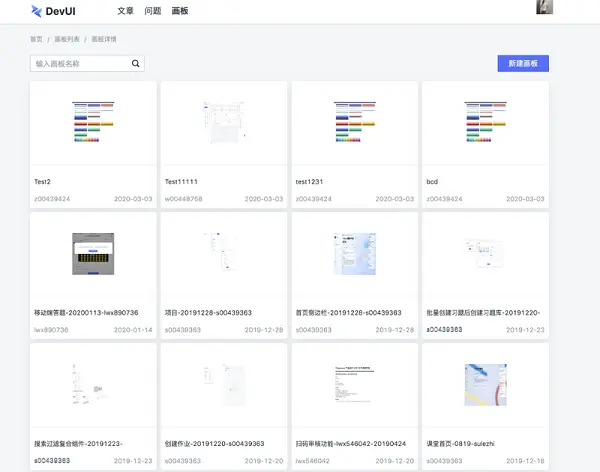 我们会有一个画板分类以及画板列表,用于存放不同项目的设计稿。