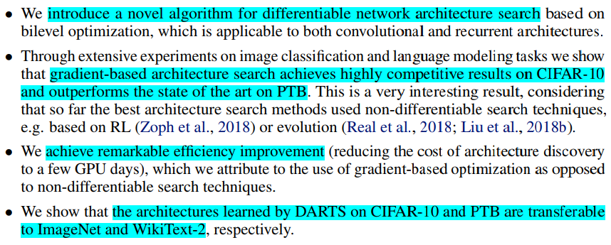 1、Propose a novel algorithm for differentiable network architecture search.