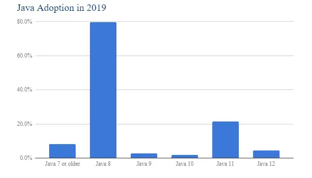 这个调查显示,使用Java 8的公司和程序员高达80%, 这是为什么呢?大家为什么不升级到Java 11呢?
