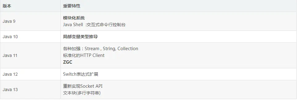 这几年的Java版本中,就缺乏这种重大功能的升级了,我把我有点印象的功能升级列一下: