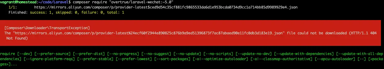 The "https://mirrors.aliyun.com/composer/p/provider-latest%24ecf60f2944e890825c876b9a9ed51396873f7ac87abaed90e11fc0db3d183e19.json" file could not be downloaded (HTTP/1.1 404 Not Found)
