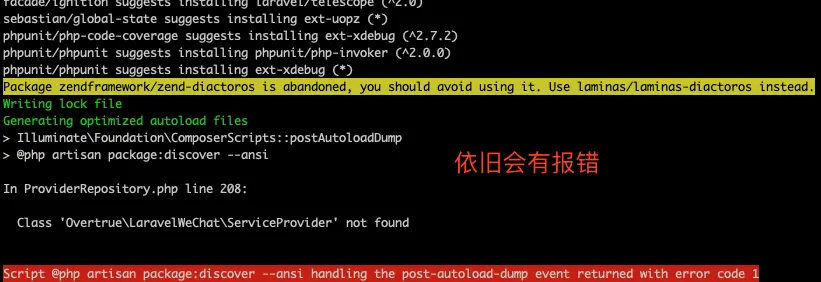 // Script @php artisan package:discover --ansi handling the post-autoload-dump event returned with error code 1