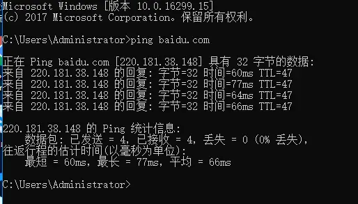 我们也可以使用ping命令来查看我们与其他设备之间网络通不通的问题(CMD):