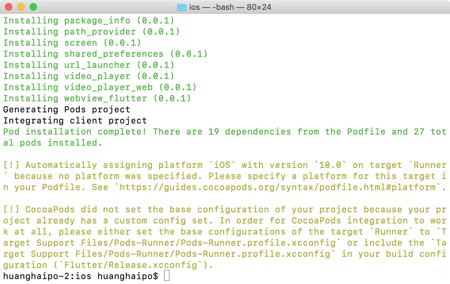 修改完就大功告成,接下来cd到工程目录下,执行pod install