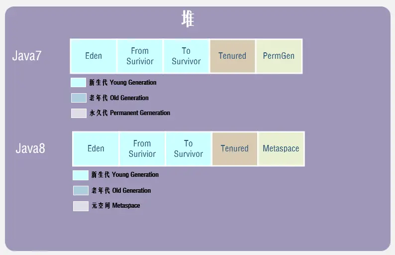 的规划了[1],在目前已经发布的JDK 1.7的HotSpot中,已经把原本放在永久代的字符串常量池移出,JDK8已经将永久代被替换成元空间,直接使用堆外内存。