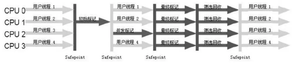 看到CMS收集器的运作步骤中并发和需要停顿的时间。