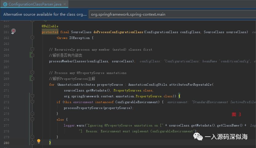 查看是否有内部类,如果有则调用图 2 中的方法处理。接着处理 PropertySources 注解。