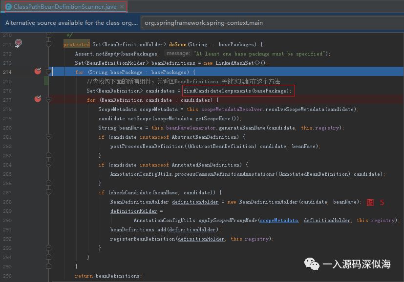 findCandidateComponents 方法就是核心,它扫描了所有的类,并返回 BeanDefinition 集合,然后注册到容器当中。