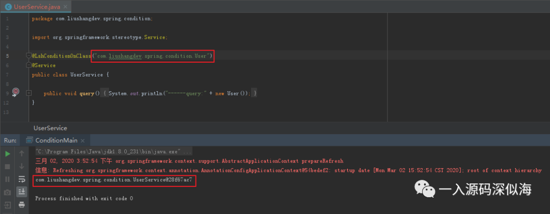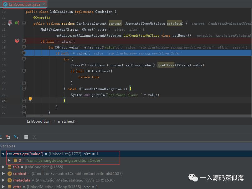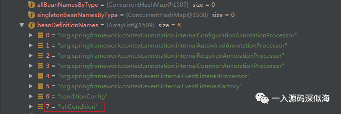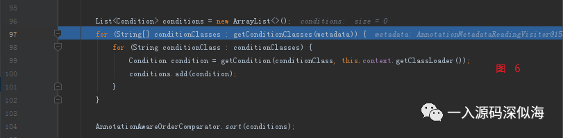 接下来,获取 Conditional 注解中设置的值,这个值就是我们实现了 Condition 接口的类 LshCondition,因为可能设置多个,所以进行排序。