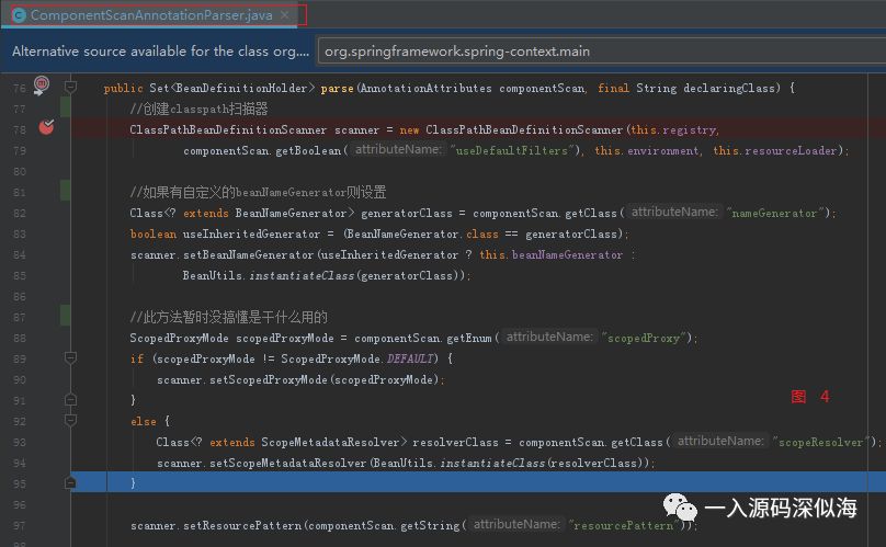 接下来会循环 componentScans。由 componentScanParser.parse 方法解析每一个 ComponentScan。