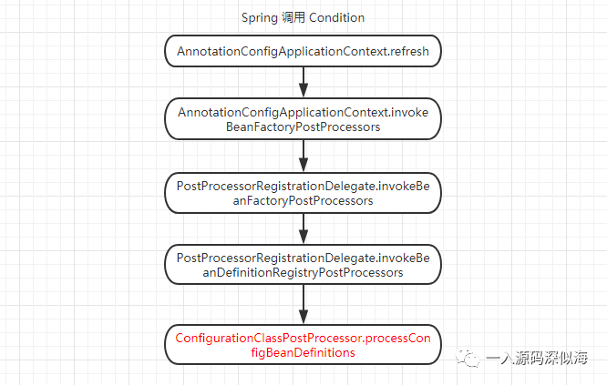 首先奉上我蹩脚的 Spring Condition 流程图,我们看源码都离不开 Spring 的生命周期,Condition 的流程只是生命周期流程中的一个分支。