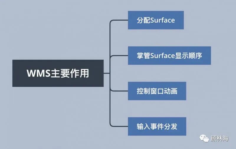 对WMS来说,它并不关心我们应用本身的Window对象或者View对象,对它来说,它一个重要的功能就是给应用端的Window分配Surface,并且,控制这些Surface的显示顺序,位置和尺寸。