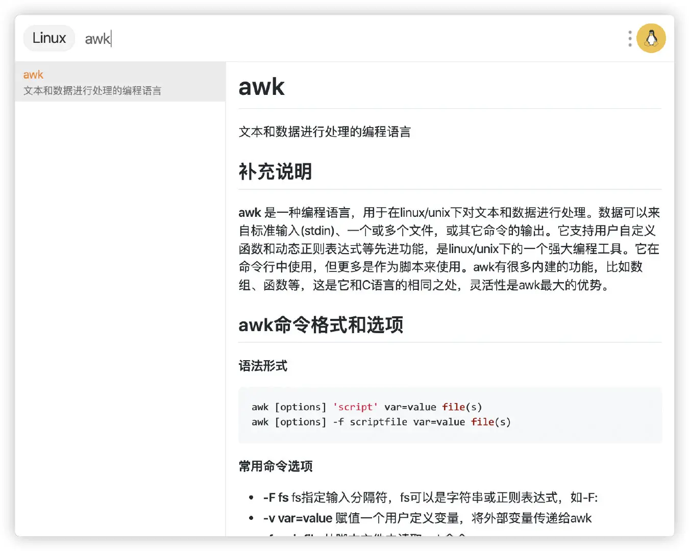 可以快速查找 Linux 命令使用方法,这真是极好的。