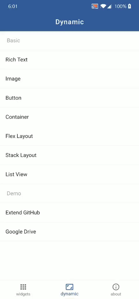 Dynamic 模块允许我们加载下发或者缓存的 JSON 来完成渲染。