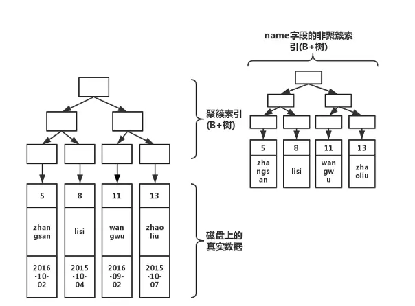 其他索引如普通索引、前缀索引等为非聚族索引。