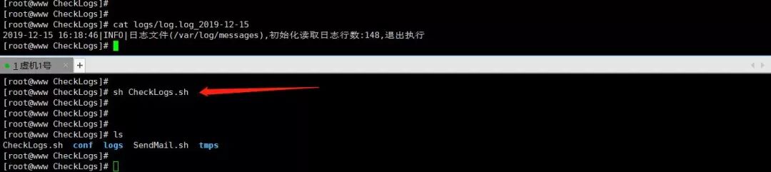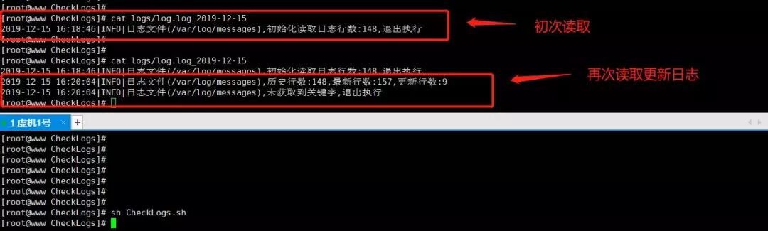 初次执行CheckLogs.sh脚本会读取日志文件并记录当前读取的行数