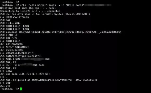 echo '邮件正文'|mailx -v -s "邮件标题" 邮箱地址