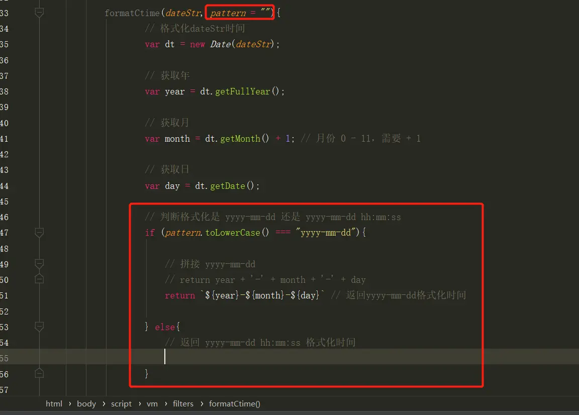 return `${year}-${month}-${day}` // 模板字符串