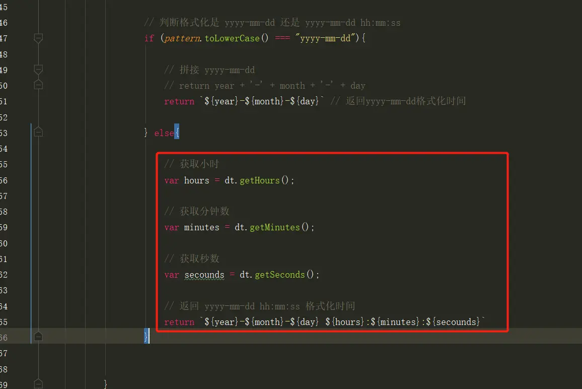 上面已经完成可以格式化两种时间格式,下面来完善时分秒的格式化,如下: