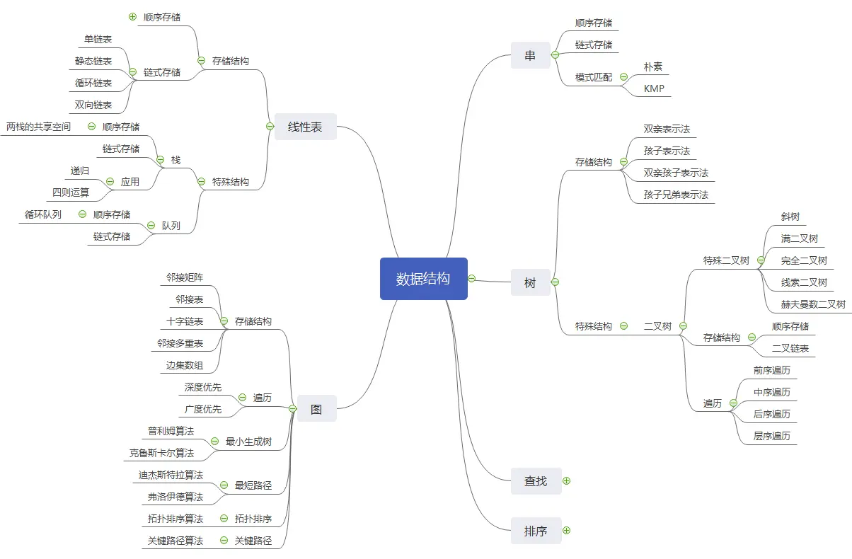 - 逻辑结构:集合、线性(一对一)、树(一对多)、图(多对多)