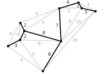 现在我们假设一个图有m个节点,n条边。首先,我们需要把m个节点看成m个独立的生成树,并且把n条边按照从小到大的数据进行排列。在n条边中,我们依次取出其中的每一条边,如果发现边的两个节点分别位于两棵树上,那么把两棵树合并成为一颗树;如果树的两个节点位于同一棵树上,那么忽略这条边,继续运行。等到所有的边都遍历结束之后,如果所有的生成树可以合并成一条生成树,那么它就是我们需要寻找的最小生成树,反之则没有最小生成树。