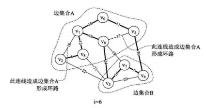 2)在已经寻找的边中发现最小边,这个边必须有一个点还没有访问过,将还没有访问的点加入我们的集合,记录添加的边;