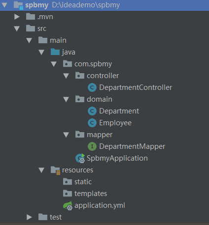 DepartmentController 这里会报错。这是正常的现象,因为DepartmentMapper 使用的是 @Mapper ,在项目启动后才会进行扫描,在程序编码阶段,找不到是正常的。