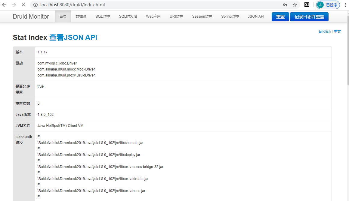 通过 http://localhost:8080/druid/index.html 可以实现对数据库的监控