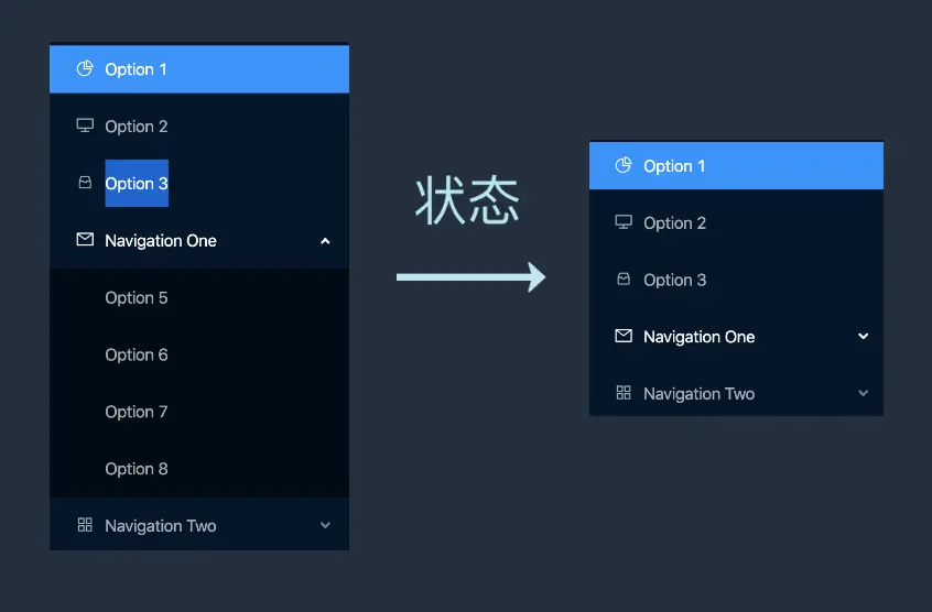 而组件之间的变化是通过状态来改变的,你可以把这个状态想象成是一个触发器的开关,只要状态变了之后,那么 React 就会根据这些新的状态把这个组件在渲染一次,把它更新成新的。这个状态是由组件内部来管理的,那么在组件这么一个独立的单元里边,它负责自己的样式还有状态的改变,会使得开发很有逻辑。就不像是 jquery,如果你想改变哪个组件的状态的话,需要先找到这个组件,然后再手动的去改变它的状态。