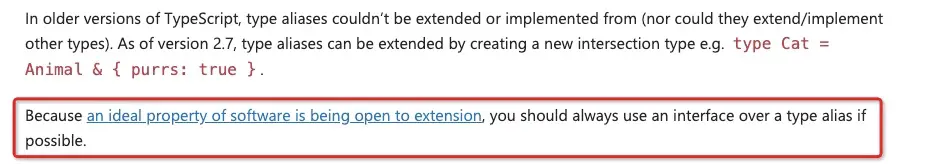 这篇文章说了一些interface可以做到,但是type alias做不到的地方,算是官方的补充。我就直接跳结论了