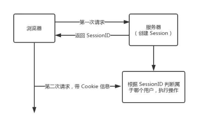 第一次创建 Session 的时候,服务端会在 HTTP 协议中告诉客户端,需要在 Cookie 里面记录一个 SessionID,以后每次请求都把这个会话 ID 发送给服务器,我就知道你是谁了。
