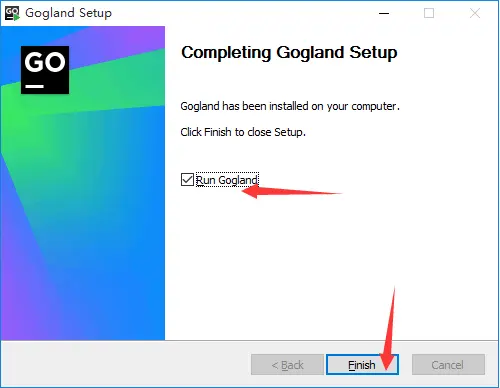接着一路 Next,直到出现如下界面,安装完成,选择 Run Gogland 立即运行。
