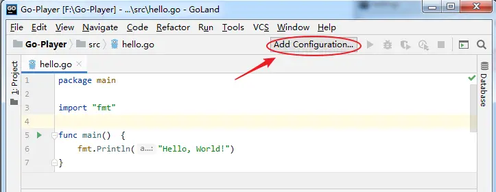 随便点击一个go文件,就能在下图箭头处看到配置入口,点击进入配置一下 Go运行器。