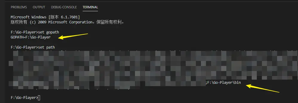 set GOPATH=E:\MING-Code\GoPlayer