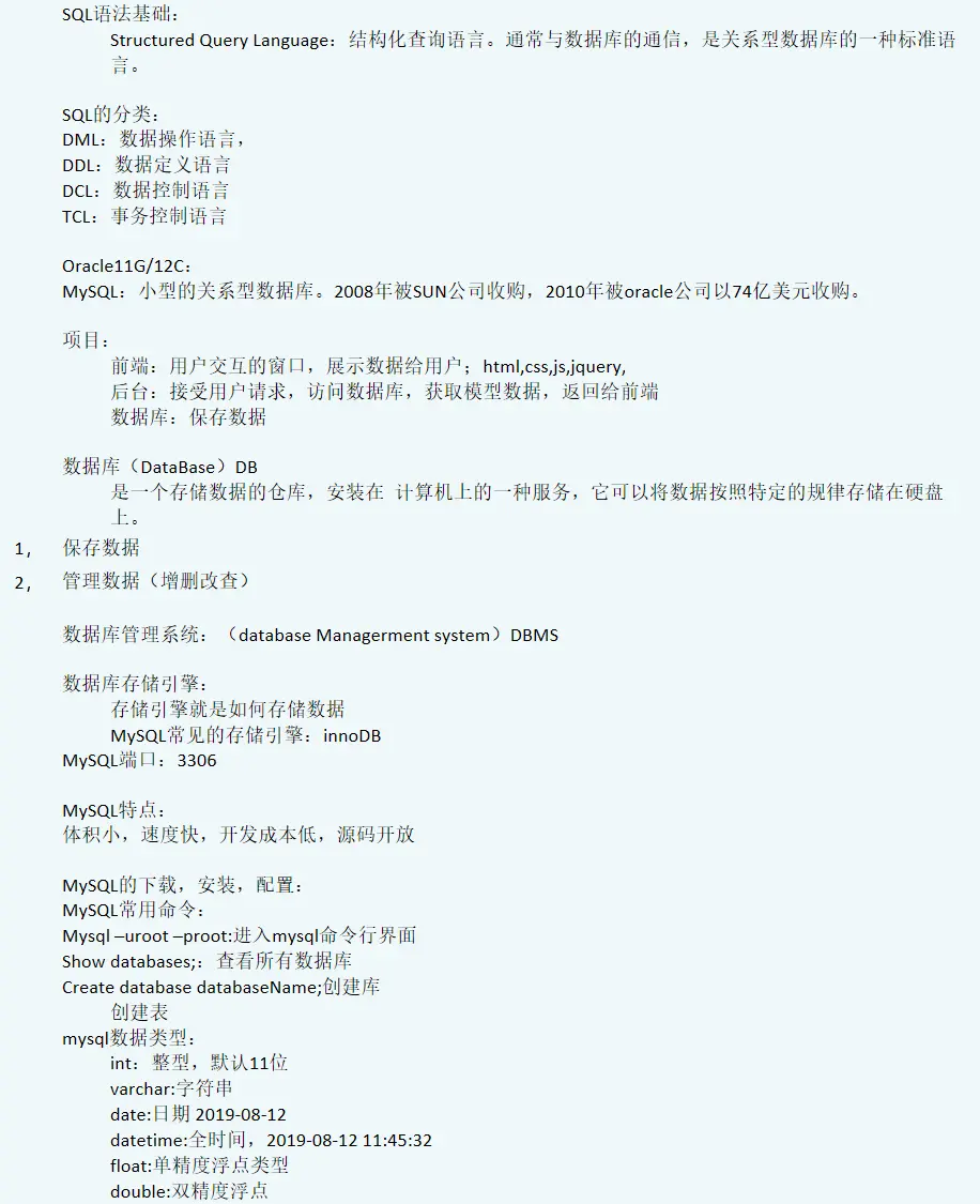 2、数据库DDL语句