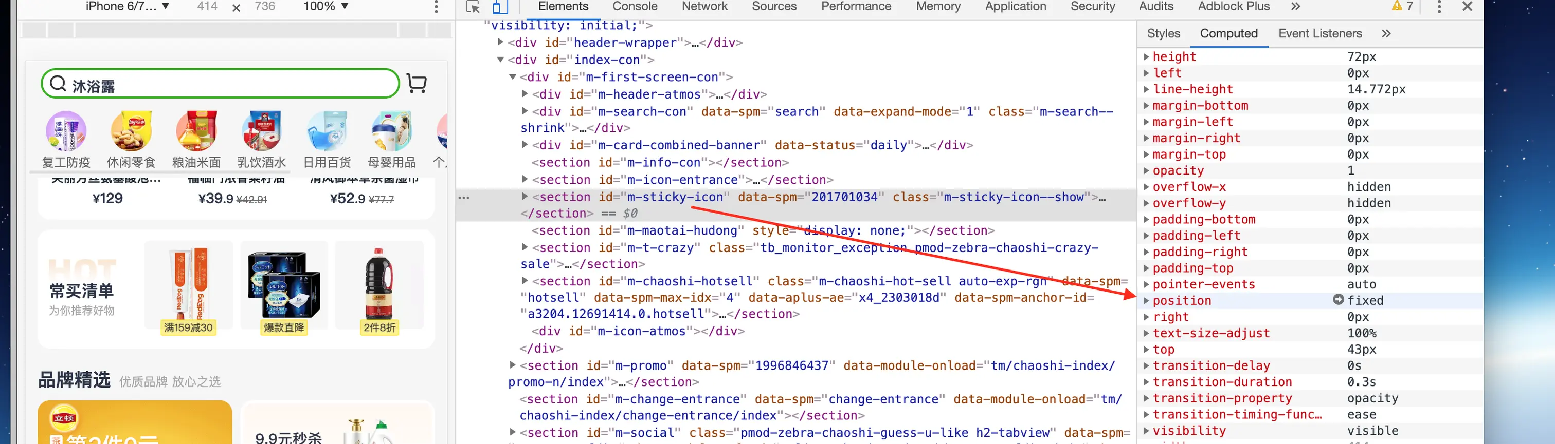 不然发现,他们实现的原理:利用父元素 onscroll监听滚动高度,滚动高度到达吸顶的子元素,这时设置 postion: fixed。